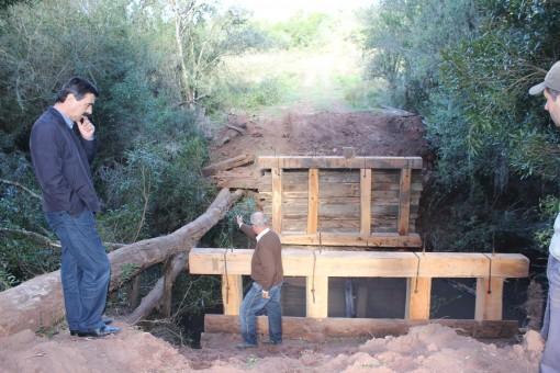 Na tarde desta quinta-feira, dia 07, o Prefeito Otomar Vivian e o Secretário de Obras do Município, Flávio Chaves, estiveram na região da Guarda Velha para acompanhar a construção de mais uma ponte no interior.