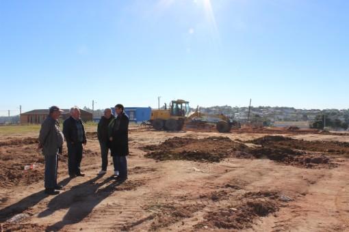 O início do trabalho no terreno foi acompanhado na manhã de sexta-feira, pelo Secretário de Obras Ilson Tondo e pelo Vereador Boca Torres acompanhado do Caçapavano Giordano Borba, assessor do Gabinete do Governador do Estado.