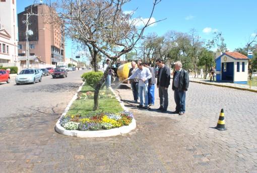 O Chefe do Setor de Praças e Jardins, Patrício Pazinato, informou que a água utilizada para aguar as flores é da Fonte do Mato.