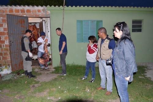 A ação ocorreu a partir de uma denúncia anônima recebida pela Vigilância Sanitária. No local havia dentro de um resfriador vários quilos de carne bovina, suína, ovina e aves. Também foram apreendidas serras e balanças.