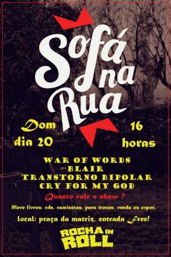 A tarde de domingo já tem atração ao ar livre para quem gosta de boa música e de entretenimento agregando várias manifestações culturais. O Sofá na Rua é mais uma iniciativa do Coletivo Rocha in Roll, e busca destacar o trabalho de músicos locais em meio a um espaço de troca, venda e exposição de livros, CDs e camisetas.