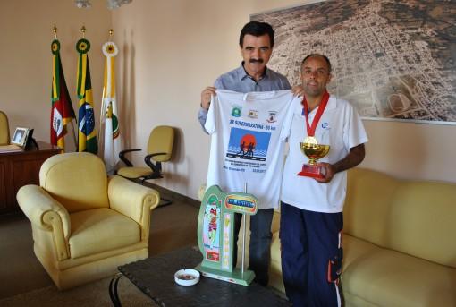 O Prefeito Otomar Vivian foi presenteado com uma camiseta do evento pelo atleta Charles, que agradeceu o grande apoio dado pela Prefeitura à equipe.
