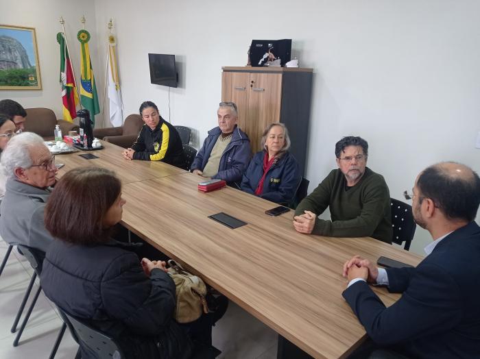 A direção do Grupo de Dança e Arte Nativa, Os Chimangos, liderada pelos professores Luiz Delfino Albarnaz e Irajá Lemos, se reuniu nesta semana com o prefeito Giovani Amestoy e equipe para discutir o retorno do Festival Internacional do Folclore,