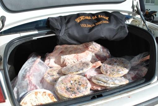Em operação nesta terça-feira, dia 02, a equipe de Vigilância Sanitária do município apreendeu em um supermercado da cidade, 61 kg de carne ovina e 3,5 kg de pizzas, produtos que estavam sem inspeção sanitária e sem nota fiscal de procedência.