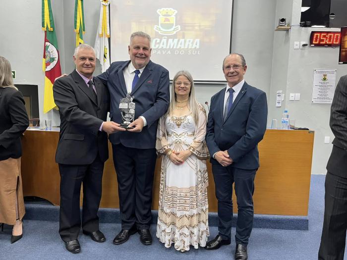 Caçapavano a Gilberto Dickel da Fontoura O evento aconteceu na sexta-feira, 22 de novembro, na Câmara de Vereadores, uma homenagem proposta pelo vereador Silvio Tolfo Tondo.