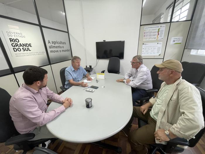 Na tarde desta terça-feira, dia 18, o Prefeito Marcelo Spode, o Secretário de Planejamento e Meio Ambiente Stener Camargo e o secretário adjunto Paulo Nogara estiveram reunidos com o assessor da Secretaria de Agricultura do Estado Jorge Siebert. Na oportunidade foi discutido o protocolo do projeto apresentado no edital do Governo do Estado que prevê R$ 300 mil reais para terceirização de horas máquinas.